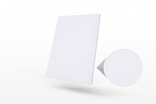 Baksidesbehandlingar Corona, mekanisk slipad, softsanded (slipad folie) eller öppen fiber - Färger RAL 9016, RAL 9003, RAL 9010 är standard, infärgning av RAL och NCS kulörer kan produceras efter önskemål